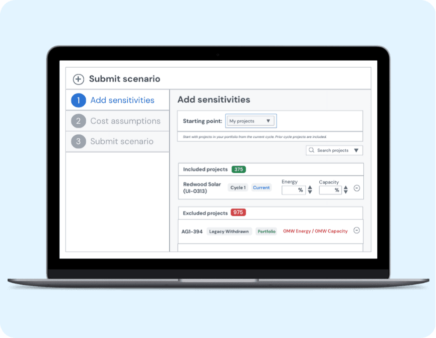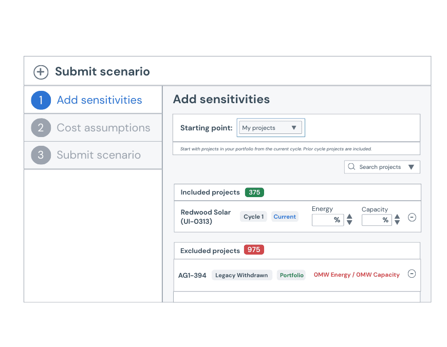 IQ Study Projects helps evaluate late-stage prospects before deciding whether or not to submit an interconnection request, by enabling users to create projects and add them into a shadow cluster study. User-defined project inputs include fuel type, project size (MFO/CIR), and POI (bus or line tap), and can be input based on internal siting strategy, proprietary research, or competitive awareness and evaluate its performance within PJM’s cluster structure.